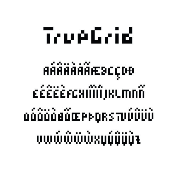 Der Display Font TrueGrid umfasst insgesamt 256 Glyphen mit einem Schriftschnitt: